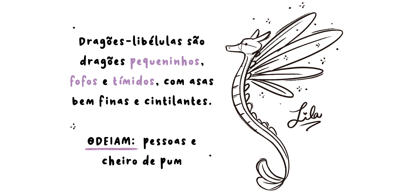 Os animais mágicos que ela mais ama são os tímidos Dragões-libélulas; vários deles moram bem no jardim da casa da Lila e eles amam a companhia dela! E claro, como a Lila ama todas as fofuras que existem por Florentia, ela tem um espacinho especial por aqui, onde ela conta um pouco mais sobre cada criaturinha! Clique no bilhete para conferir!